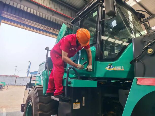 作為此次客戶關(guān)愛行活動(dòng)的重要一站,山推服務(wù)團(tuán)隊(duì)頂著盛夏酷暑,率先奔赴山東區(qū)域某港口,為客戶的6臺(tái)LE60-X5電裝整機(jī)提供全方位檢修服務(wù)。抵達(dá)現(xiàn)場(chǎng)后,服務(wù)人員迅速投入工作。針對(duì)港口作業(yè)環(huán)境的特點(diǎn),團(tuán)隊(duì)制定了精細(xì)化服務(wù)方案:首先對(duì)6臺(tái)整機(jī)開展全車點(diǎn)檢,重點(diǎn)檢查核心組件的運(yùn)行狀態(tài),細(xì)致排查螺栓緊固度,確保設(shè)備關(guān)鍵部位無隱患。