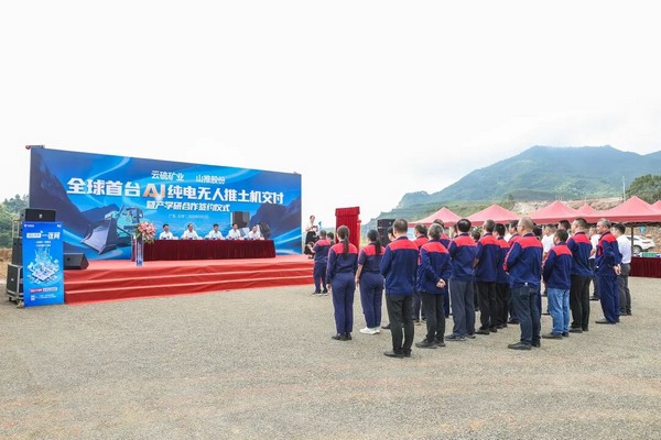 儀式上,云硫礦業(yè)與山推完成“金鑰匙”交付,標(biāo)志著全球首臺(tái)AI純電無人推土機(jī)正式投入使用;雙方簽署戰(zhàn)略合作協(xié)議;共同為“云硫—山推產(chǎn)學(xué)研合作基地”揭牌。一系列儀式莊重而高效,展現(xiàn)出雙方合作層次的不斷深化。