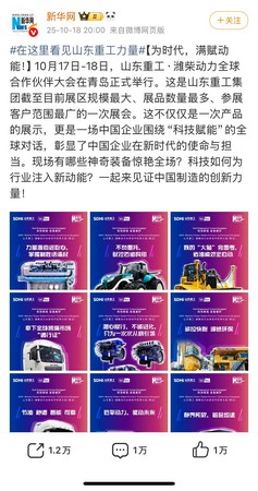 10月17日-19日,以“科技賦能 裝備美好”為主題的山東重工·濰柴動(dòng)力全球合作伙伴大會(huì)在青島召開(kāi),吸引了眾多主流媒體的重點(diǎn)關(guān)注,大會(huì)相關(guān)話題高居熱搜榜單,讓我們一起回顧這次出圈活動(dòng)的精彩瞬間。