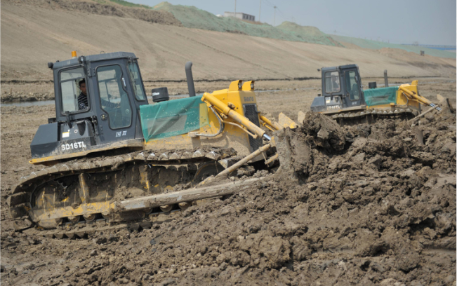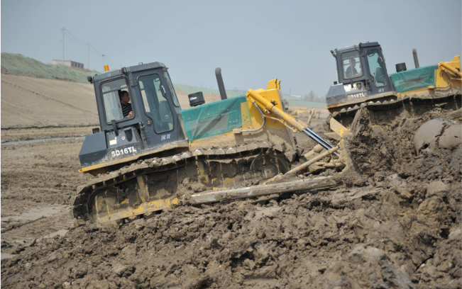 十幾輛山推SD16TL推土機在運河河道內作業(yè),“馬力大、省油、駕駛室還舒服”,推土機駕駛員毫不掩飾的夸贊這些推土機。SD16TL推土機超寬的三角型履帶避免了機器在軟土、濕地、沼澤地帶等松軟物料作業(yè)場所作業(yè)時的下陷,在河道拓寬、清淤等水利工程施工中具備無可比擬的作業(yè)能力。
