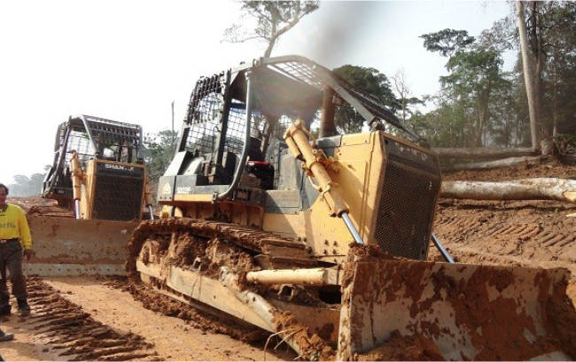 SD22F推土機(jī)作業(yè)于非洲某森林,承擔(dān)道路清障,大型木材托運(yùn)等工作,SD22F伐木版推土機(jī),增加伐木棚提升安全性,后配置機(jī)械絞車,牽引力強(qiáng)勁,讓施工更簡單。