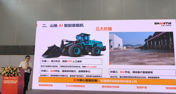大會(huì)現(xiàn)場(chǎng)重磅發(fā)布了《混凝土行業(yè)數(shù)智化產(chǎn)品推薦目錄》首批名單,山推AI智能純電裝載機(jī)、AI智慧建材園管理平臺(tái)兩款產(chǎn)品入選首批推薦目錄。
