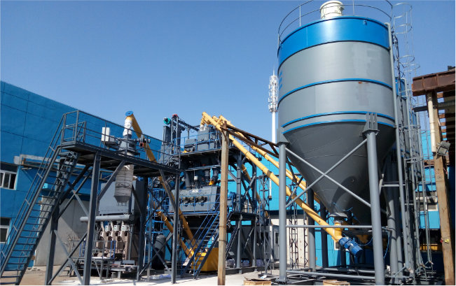 2016年12月,天津客戶采購(gòu)山推建友1套SjGZD040-3G型干混砂漿站成功應(yīng)用,用于預(yù)拌干混砂漿生產(chǎn)線。該設(shè)備砂倉置于主樓設(shè)備頂部,粉料倉置于主樓旁邊,計(jì)量系統(tǒng)位于攪拌機(jī)上邊,計(jì)量完成后物料直接卸入攪拌機(jī),具有占地面積小、生產(chǎn)率高、節(jié)能環(huán)保、等特點(diǎn),適合精細(xì)干混砂漿的生產(chǎn)。