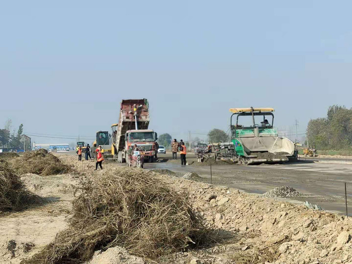 在濰坊市昌樂縣某園區(qū)道路的施工現(xiàn)場(chǎng),山推成套路面施工設(shè)備包括壓路機(jī)、攤鋪機(jī)等正有條不紊的進(jìn)行水穩(wěn)層施工。山推設(shè)備質(zhì)量可靠,高效穩(wěn)定,施工期間未出現(xiàn)任何問題,圓滿完成施工任務(wù),縮短了整個(gè)施工周期,贏得了施工方的高度贊譽(yù)。
