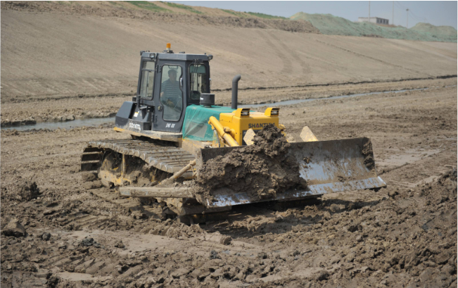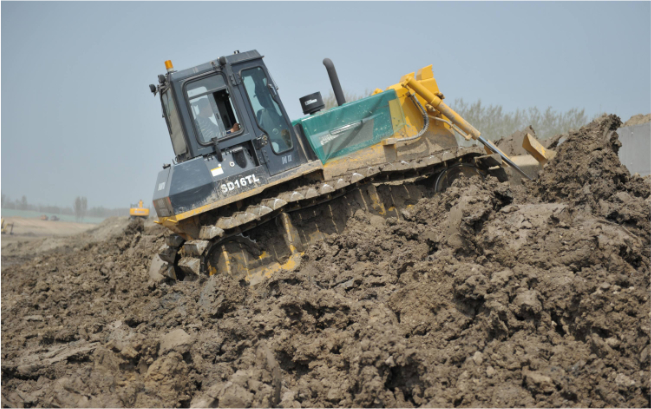 十幾輛山推SD16TL推土機在運河河道內作業(yè),“馬力大、省油、駕駛室還舒服”,推土機駕駛員毫不掩飾的夸贊這些推土機。SD16TL推土機超寬的三角型履帶避免了機器在軟土、濕地、沼澤地帶等松軟物料作業(yè)場所作業(yè)時的下陷,在河道拓寬、清淤等水利工程施工中具備無可比擬的作業(yè)能力。