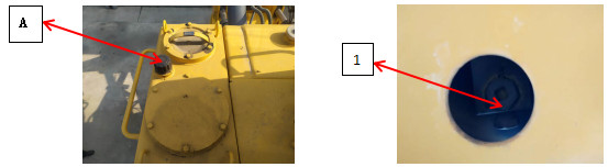 1、把推土鏟和松土器降到地面,使之停放牢靠,關(guān)閉發(fā)動(dòng)機(jī),并慢慢地轉(zhuǎn)動(dòng)加油口(A)的蓋以釋放內(nèi)部壓力。然后把蓋拆下。