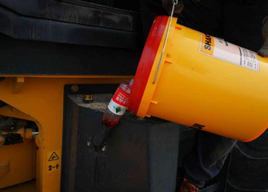 先將壓路機(jī)停放在平坦的地面上,處于水平位置。(注意:不要在冷車狀態(tài)下進(jìn)行換油,將發(fā)動機(jī)運(yùn)行10分鐘最佳,以增加機(jī)油的流動性)