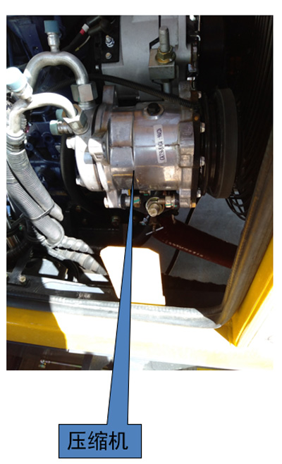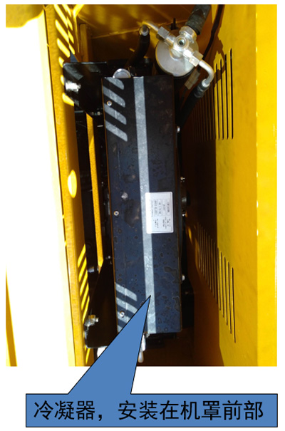 檢查冷凝器表面及冷凝器與發(fā)動機水箱之間(停機檢查)是否有碎片、雜物、泥污,并進行清理和用水清洗。冷凝器可用長毛刷沾水輕輕刷洗,千萬不要用高壓水沖洗。裝載機在煤場、木材場、土方等環(huán)境,經(jīng)常導(dǎo)致冷凝器散熱片堵塞,要求冷凝器表面經(jīng)常清洗。檢查冷凝器表面有無脫漆,注意及時補漆,以免銹蝕。檢查冷凝器表面及管接頭處(包括儲液器接頭處)有無油跡,若有,判斷是否有制冷劑泄漏。沿著制冷劑流動的方向,用手摸著,若同一管道存在明顯溫差,此處存在堵塞,也可通過歧管壓力表,若表壓指示高壓高或極高,說明高壓管道有堵塞。